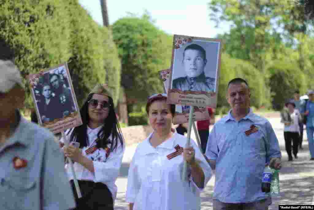 В Душанбе 9 мая прошло шествие «Бессмертного полка». Около тысячи человек с портретами своих отцов и дедов прошли от улицы Шотемур до столичного Парка Победы по улице Дружбы народов. В Парке Победы участники шествия возложили цветы к Вечному огню и почтили память погибших в Великой Отечественной войне минутой молчания. В этом году шествие "Бессмертного полка" в Душанбе прошло по инициативе посольства РФ в Таджикистане.