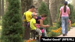 Мастона Абдуллоева, прогуливаясь по парку, разговаривала по интернет-связи с родственником, работающим в России. По ее словам, мобильный интернет – удовольствие не из дешевых, поэтому она не всегда может связаться с родными и друзьями.