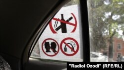 В настоящее время в около 10 процентах душанбинских такси установлены таблички, запрещающие курение, распитие спиртных напитков, включение громкой музыки и проявление пассажирами нежных чувств.