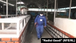 Фарход Мирзоев, сотрудник ГУ "Республиканский центр профилактической дезинфекции", говорит, что раньше дезинфекция рынков проводилась раз в месяц, сейчас она проводится ежедневно. «Наша группа работает на столичном рынке «Сафариён». Мы используем дезинфицирующее средство «алмадез» - этот препарат активен в отношении всех видов бактерий (включая особо опасные инфекции), вирусов, грибов и плесени. "Алмадез" безопасен для людей и поэтому его применяют при дезинфекции в детских учреждениях, на предприятиях общественного питания, коммунальных объектах, местах массового скопления людей и других объектах сферы обслуживания населения», - сказал он.