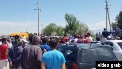 В видео, попавшем в распоряжение Радио Озоди, видно большое количество протестующих, а также сотрудники милиции и солдаты.