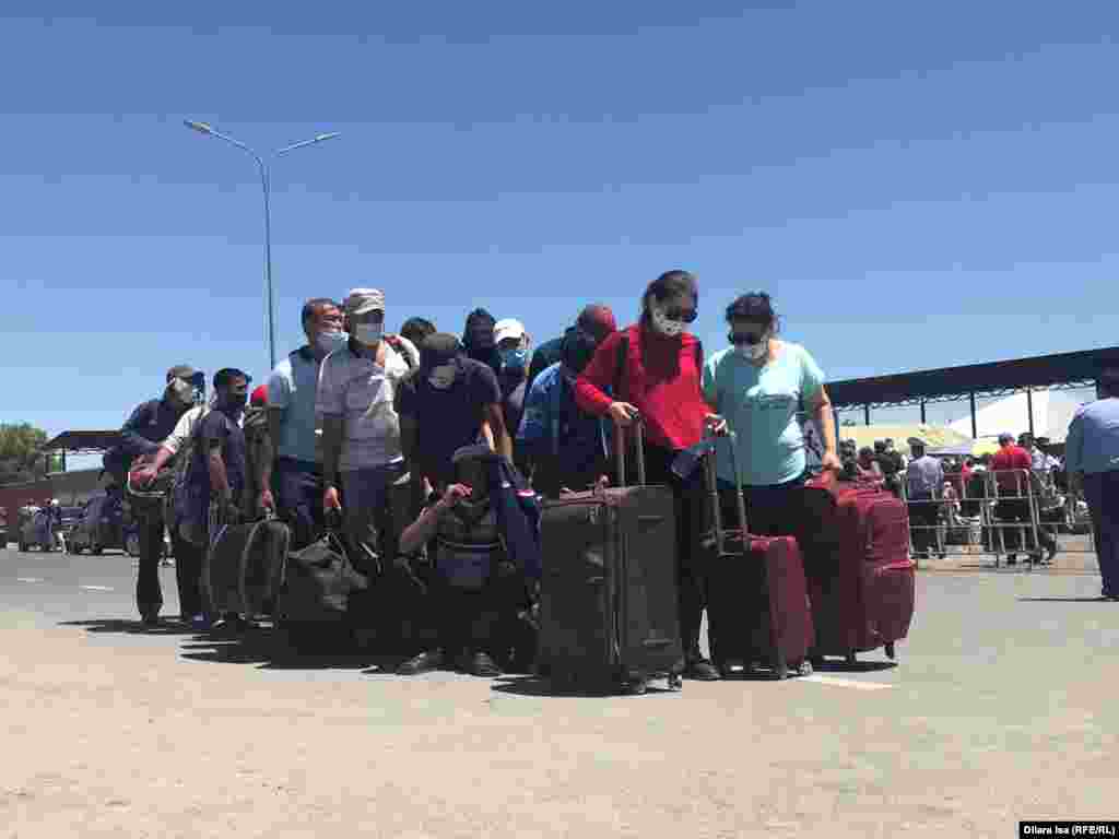Cотни граждан Таджикистана, застрявшие на пункте пропуска "Жибек-Жолы" на казахстанско-узбекской границе, ждут возвращения домой. Они живут под открытым небом в нечеловеческих условиях: спать таджикистанцам приходиться прямо на земле, еду вынуждены приготовить на костре. Ранее таджикские власти при содействии IOM, а также финансовой поддержки США и Норвегии дважды организовали вывоз своих граждан из этого пограничного пункта пропуска. 3 июля МИД Таджикистана сообщил, что в ближайшее время еще 650 граждан страны будут доставлены на родину. Фото корреспондента Казахской службы Радио Свобода.
