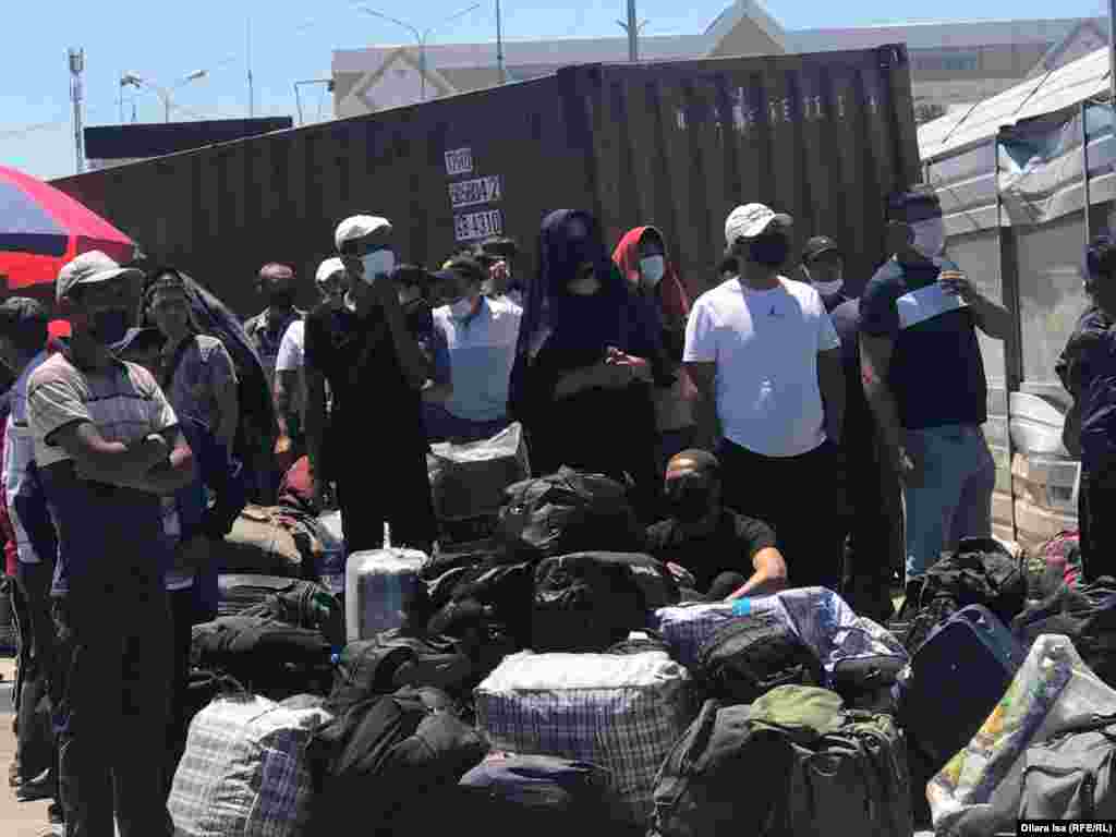 Cотни граждан Таджикистана, застрявшие на пункте пропуска "Жибек-Жолы" на казахстанско-узбекской границе, ждут возвращения домой. Они живут под открытым небом в нечеловеческих условиях: спать таджикистанцам приходиться прямо на земле, еду вынуждены приготовить на костре. Ранее таджикские власти при содействии IOM, а также финансовой поддержки США и Норвегии дважды организовали вывоз своих граждан из этого пограничного пункта пропуска. 3 июля МИД Таджикистана сообщил, что в ближайшее время еще 650 граждан страны будут доставлены на родину. Фото корреспондента Казахской службы Радио Свобода.