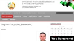 Фотографию Саидасрора Мирзоева как члена общественного совета посольства Таджикистана в России можно увидеть на сайте этой структуры, но посольство уже в течение шести дней не комментирует задержание Мирзоева.