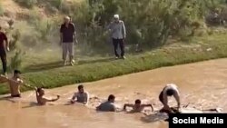 На видео, которое оказалось в распоряжении Радио Озоди видно, как спасатели и местные жители стараются вытащить из реки машину и теле погибших.