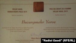 Таджикский адвокат Бурузгмехр Ёров, находящийся в тюрьме, также был номинантом на получение награды. Сегодня в Страсбурге его брату Джамшеду Ёрову был вручен Диплом премии им. Вацлава Гавела.